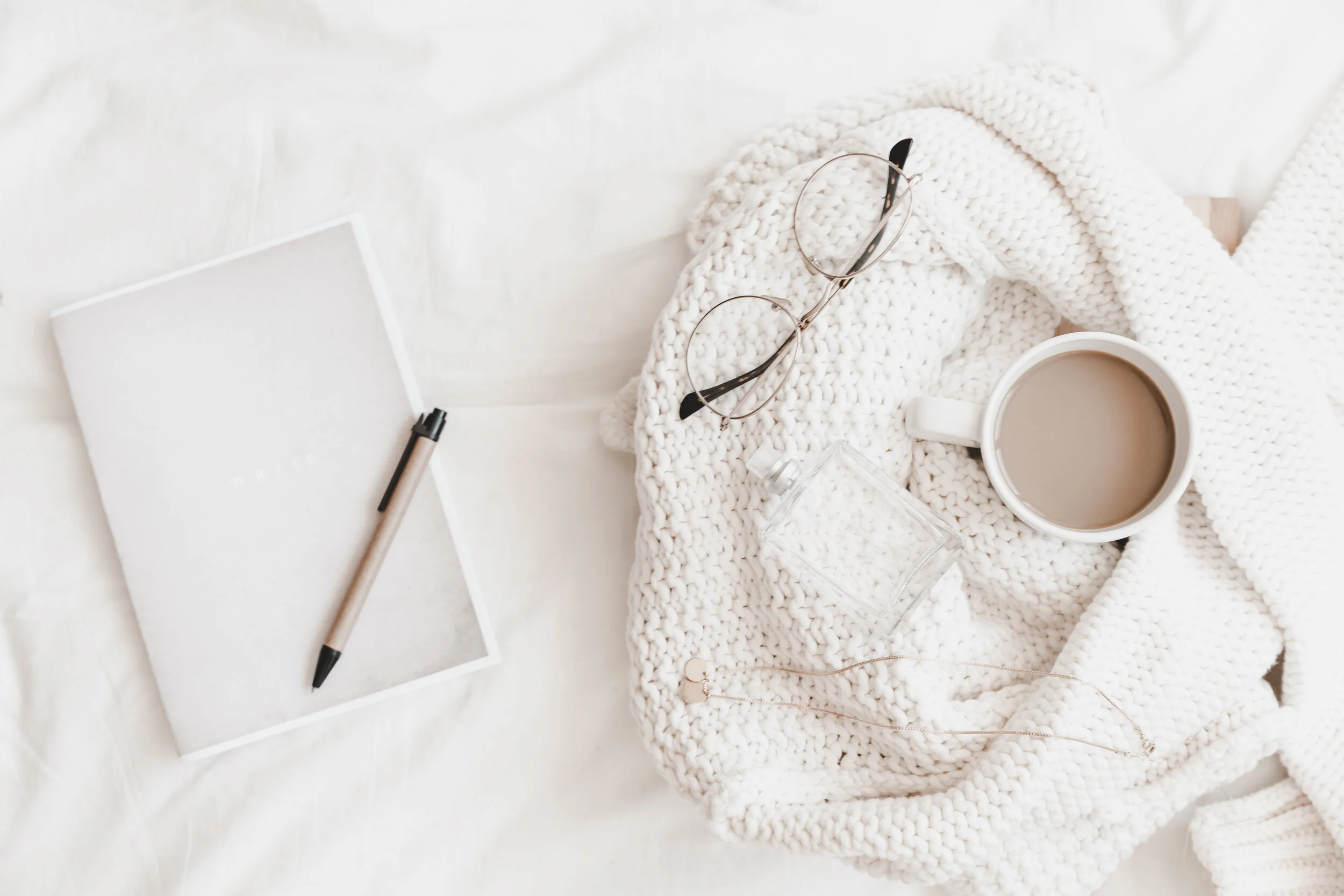 Credits: Notebook with pen on it near sweater created by freepik